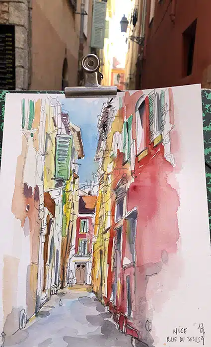 Mes stages se concentrent sur la pratique du croquis et de l'aquarelle in situ.