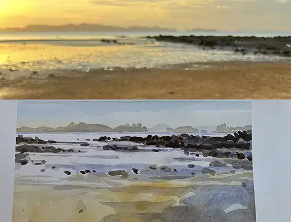 Vous pourrez certainement vous baigner dans une calanque pendant que l’aquarelle sèche, et goûter aussi durant les drink and draw à l’heure de l’apéro, aux spécialités gastronomiques de l’île.