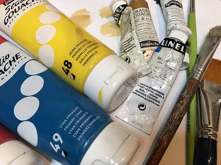 Les gouaches se composent de gomme arabique et de pigments.