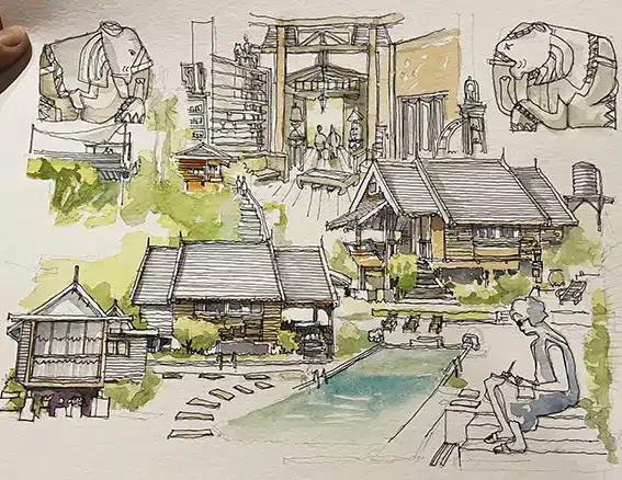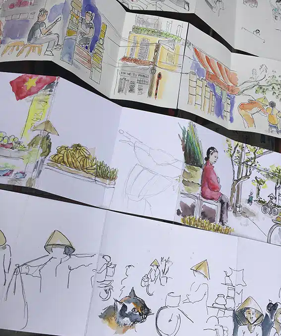 Ce prix comprend : Le stage Carnet de voyage du mercredi 17 avril 2024 (vers 9h30) au vendredi 26 avril (fin de journée), l’accompagnement de Delphine, le support de stage.