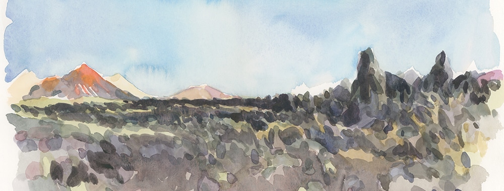 Lanzarote est une des sept îles principales des Canaries, située au nord-est de l’archipel. Entièrement volcanique, elle affiche des reliefs remarquables façonnés par la lave, présentant d’incroyables formes et des couleurs somptueuses. Une destination idéale pour travailler l’aquarelle directe, la franchise du geste et s’exercer à la force des contrastes de couleurs. Vous apprécierez ses nombreuses plages de sable noir, ses incroyables paysages, sa température toujours douce tempérée par les alizés et vous aimerez croquer les petites villes et villages aux maisons basses blanchies à la chaux ainsi que les barques de pêcheurs éparpillées ci et là. Enfin, l’artiste César Manrique, amoureux de son île, a conçu là-bas de nombreuses œuvres dont un sublime jardin de cactus particulièrement graphique. Bref, la vie est douce et volcanique sur Lanzarote, un bel oxymore qui ne demande qu’à s’exprimer sur les pages de votre carnet de voyage.