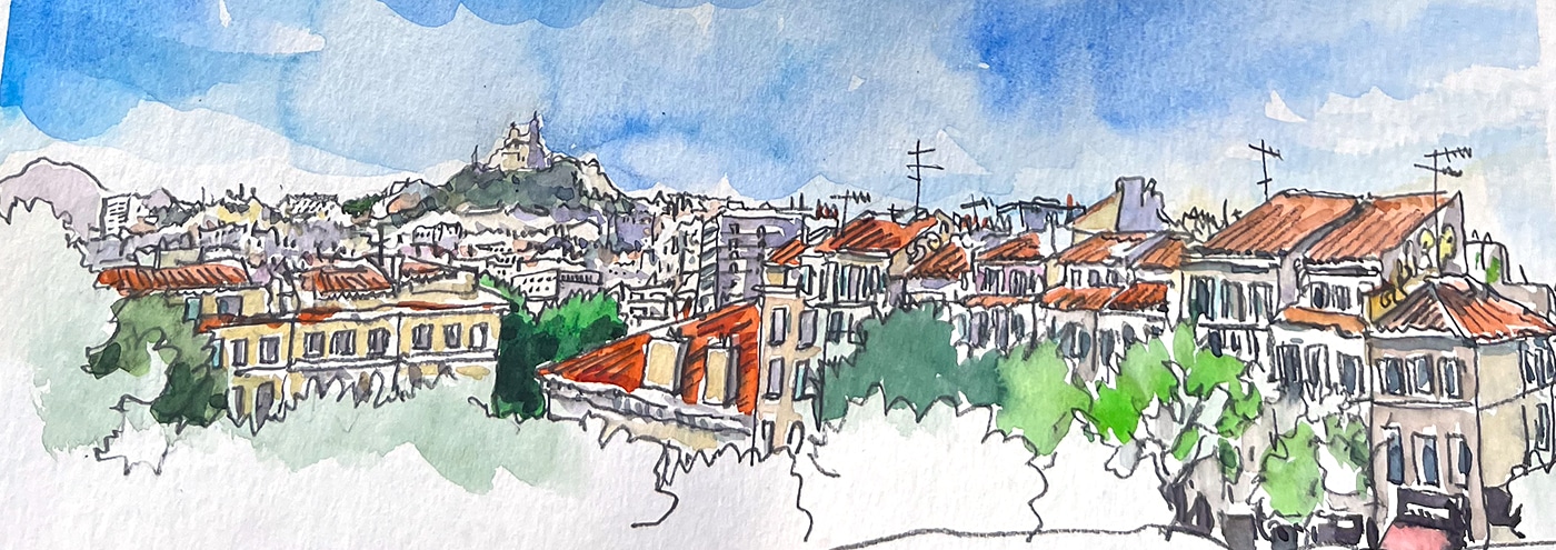Fondée par les Phocéens en 600 av JC, Marseille s’affiche comme la plus vieille ville de France. Fascinante et multiculturelle, Marseille se démarque par ses couleurs, sa lumière, son atmosphère unique et son inénarrable vieux port. Une ville de contrastes où se marient hier et aujourd’hui pour raconter de palpitantes histoires teintée de Provence, d’Orient, de Méditerranée.« Encore un grand merci Delphine. C’était vraiment super, hors temps, hors cadre, avec beaucoup de sens. Bon retour à tous : que l’énergie créative continue de vous accompagner en toutes circonstances ». Patrick, stage carnet de voyage à Marseille, mai 2023