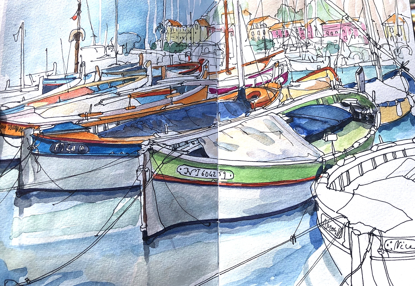 « Merci Delphine pour ces 3 jours de couleurs, de soleil, de dépassement de soi et de partage. J’ai failli croquer mon ordi aujourd’hui 😉 Merci à tous pour votre bonne humeur. » Julie, Stage Carnet de voyage à Nice, juin 2023